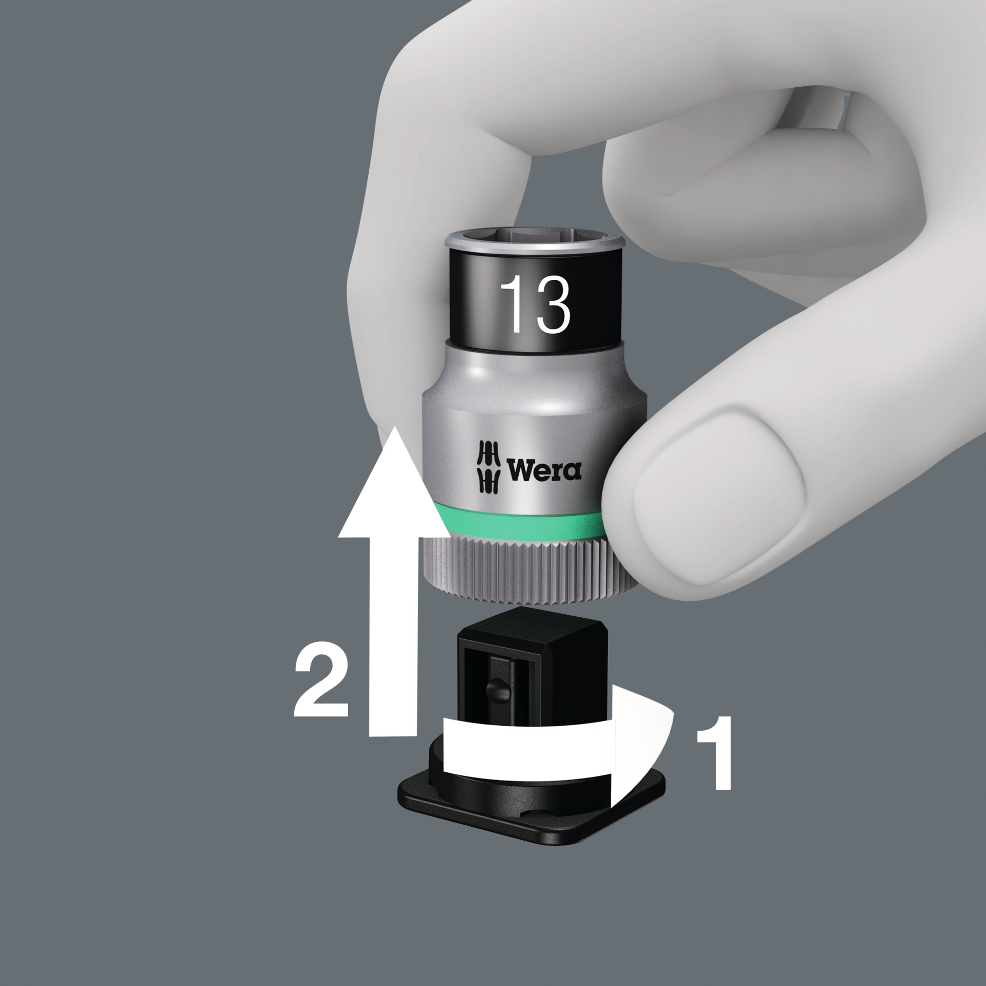 mit Haltefunktion für besonders komfortables Schrauben mit reduzierter Gefahr des Schraubenverlustes beim Zuführen zum Werkstück, kompakte, textile Box mit hoher Robustheit, mit Werkzeugfinder "Take it easy"-Farbkennzeichnung nach Größen, Rändelung am hinteren Nuss-Ende für hohe Griffigkeit bei Handbetätigung