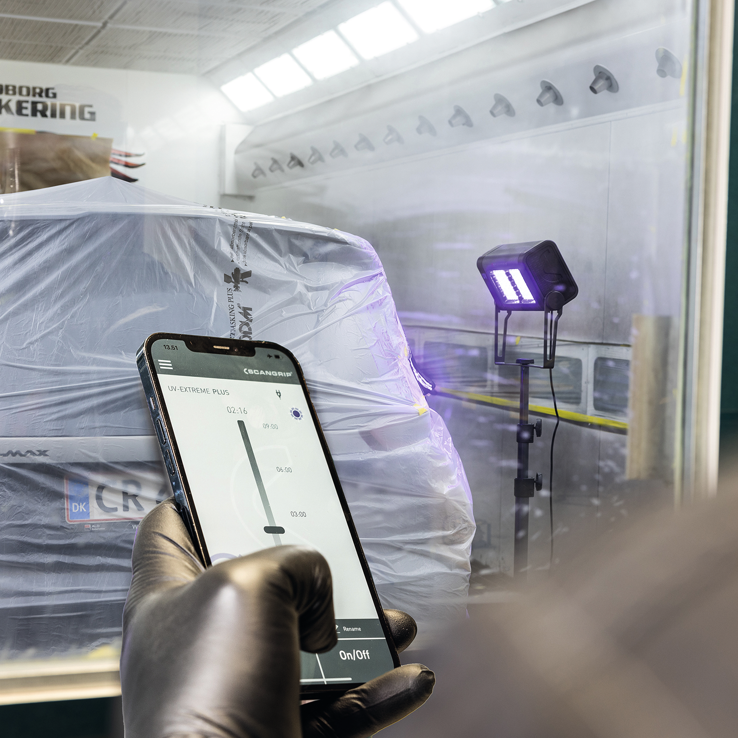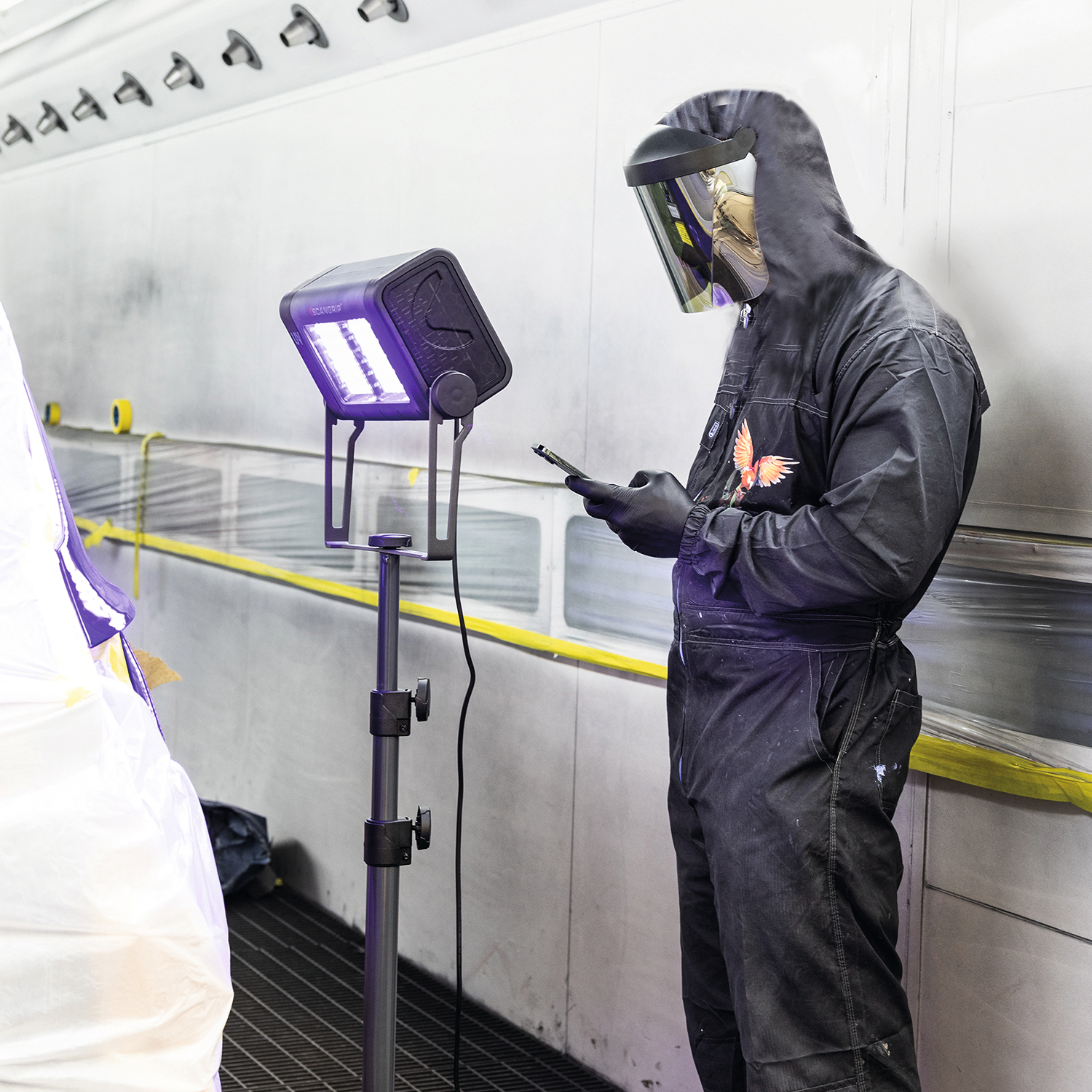 kompakt, mit Tragegriff, Kalthärtungstechnologie ((keine Erhitzung der Karosserie oder des Lackes während der Härtung), mit Bluetooth®-Lichtsteuerungs-App