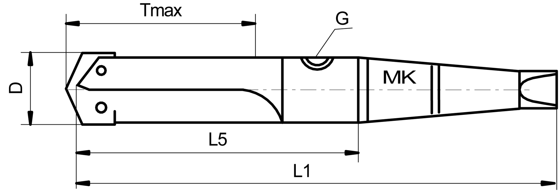 | Einsatz: | auf konventionellen Maschinen mit Morsekegelaufnahme und CNC-Bearbeitungszentren im MK-Spannfutter, durch die Auswahl der passenden Schneideinsätze auch bei instabilen Verhältnissen einsetzbar, bei größeren Bohrtiefen ist das Setzen einer Pilotbohrung |