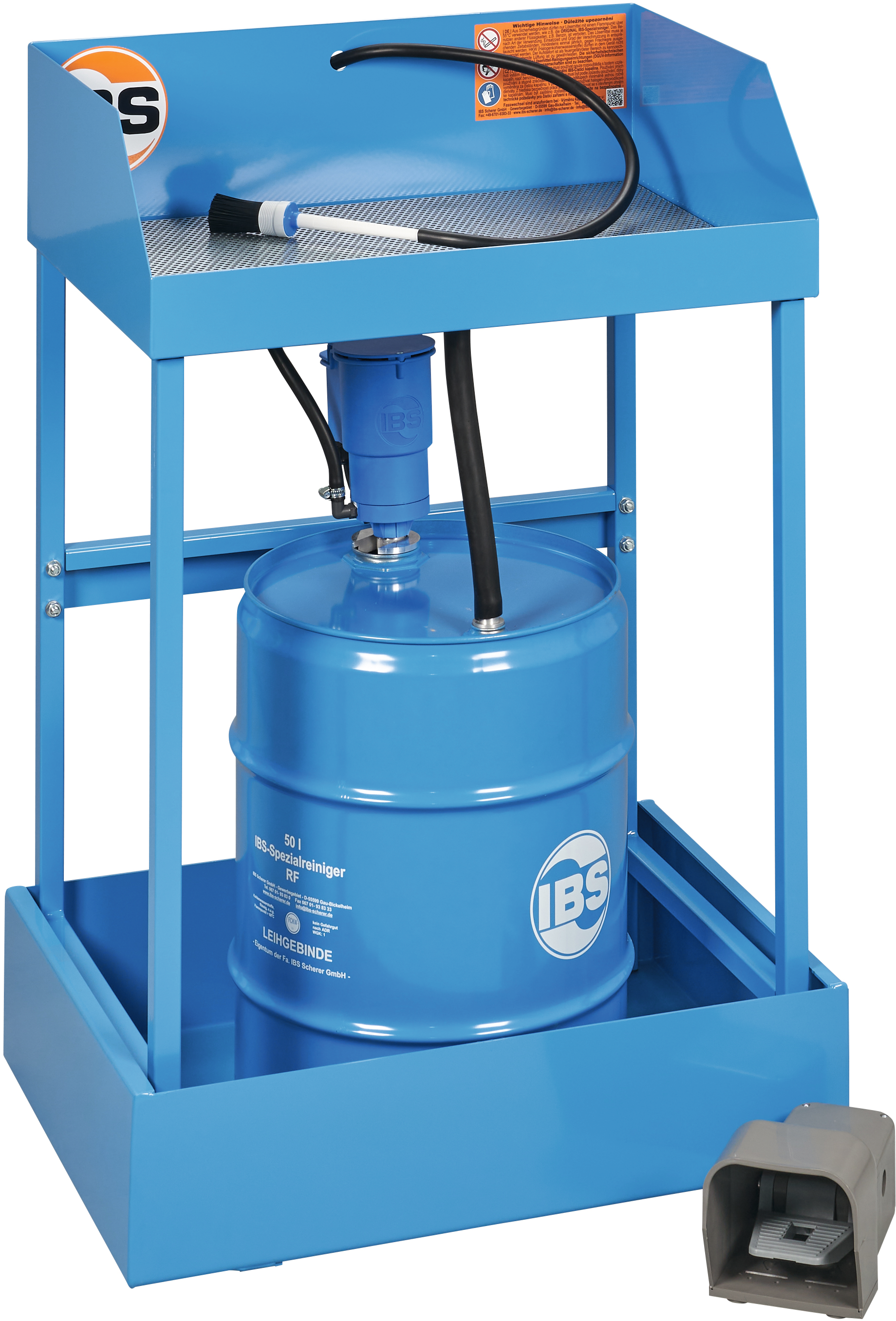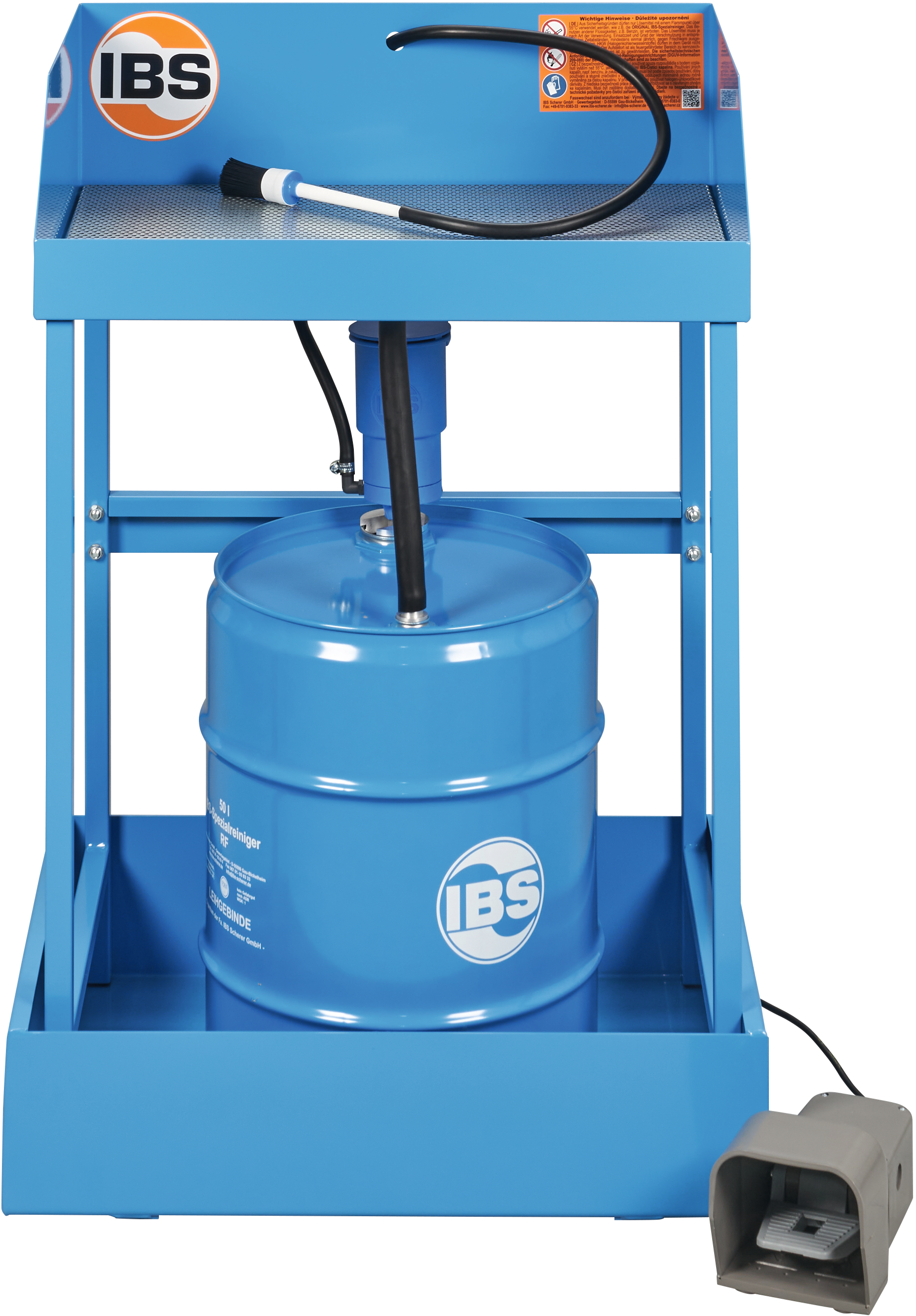 Teilereiniger, Pumpe und Pinsel (Reinigungsmittel und Auffangwanne nicht im Lieferumfang enthalten)