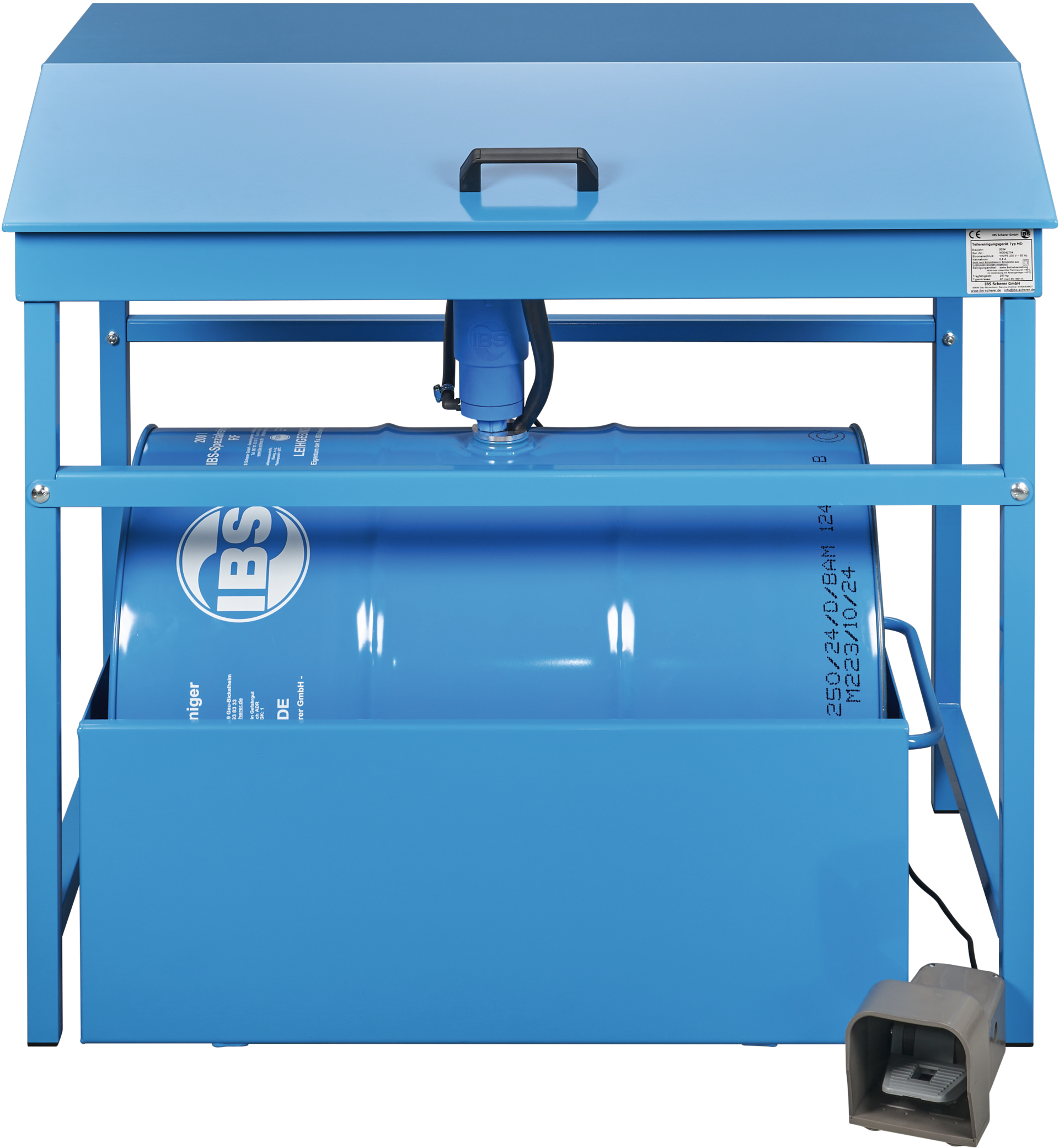 Teilereiniger, Pumpe und Pinsel (Reinigungsmittel und Auffangwanne nicht im Lieferumfang enthalten)