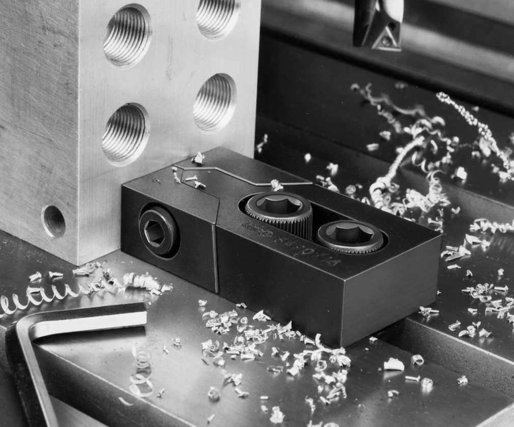 vergütet, im Brünierton angelassen, Backen spannen durch Keilwirkung gleichzeitig nach vorn und unten