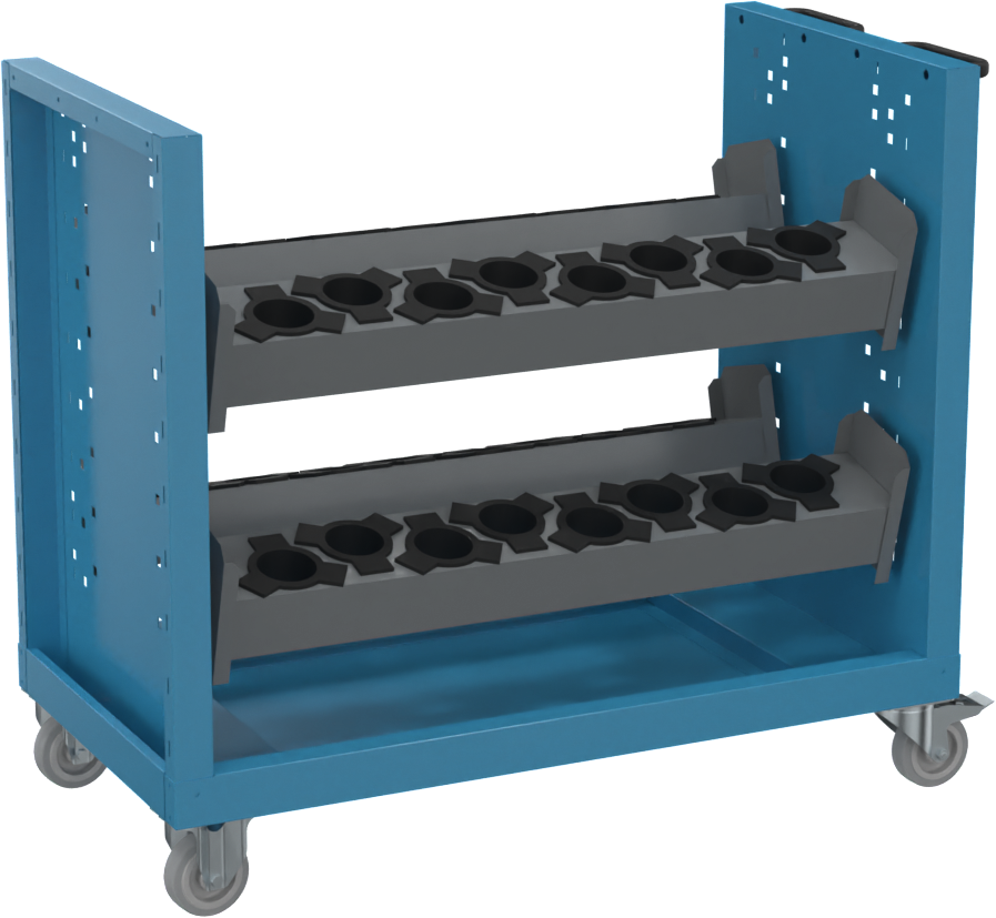 Transportwagen CNC Aufnahmen RAL7035/5012 H1000 x B1048 x T545mm für 52 Werkzeuge VDI30-40-50-60
