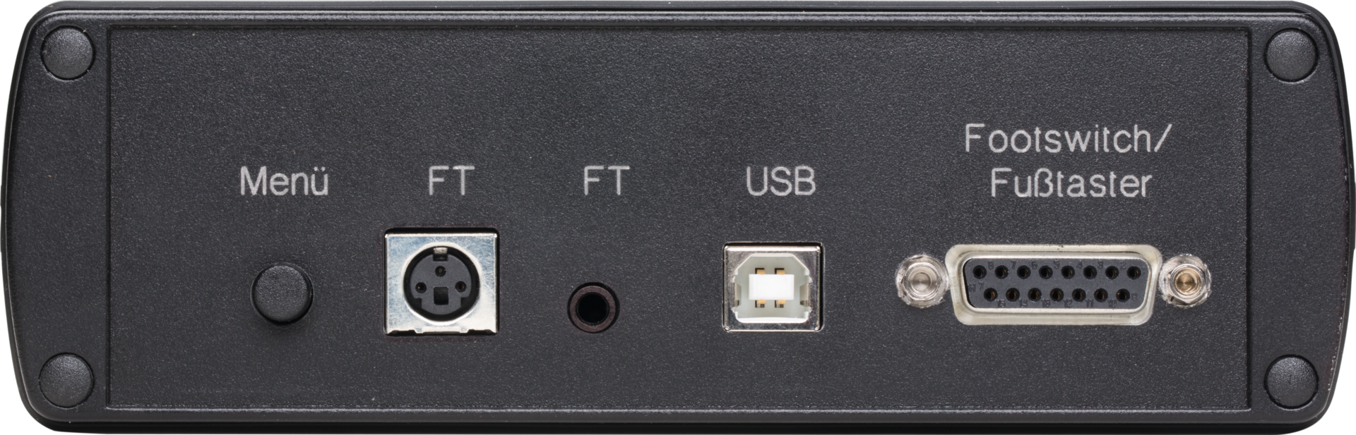 | max- anschließbare Geräte: | Eingang: 4 x RS 232 9-polig, Ausgang: 1 x USB-Schnittstelle, 3 x Fußtaster-Anschluss |