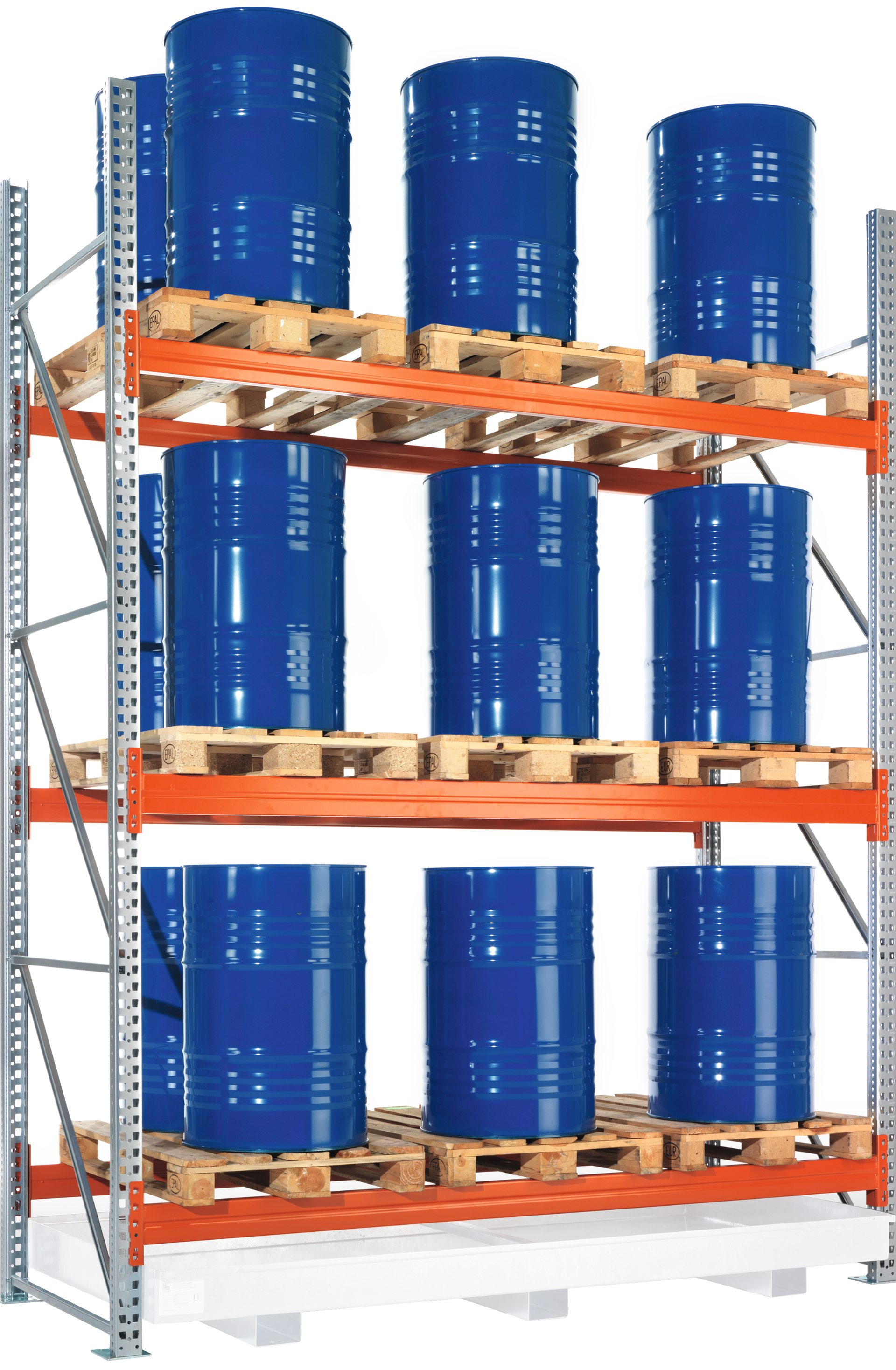 Umweltpalettenregal Fässer verzinkt 2700x1100x3800mm 3 Ebenen