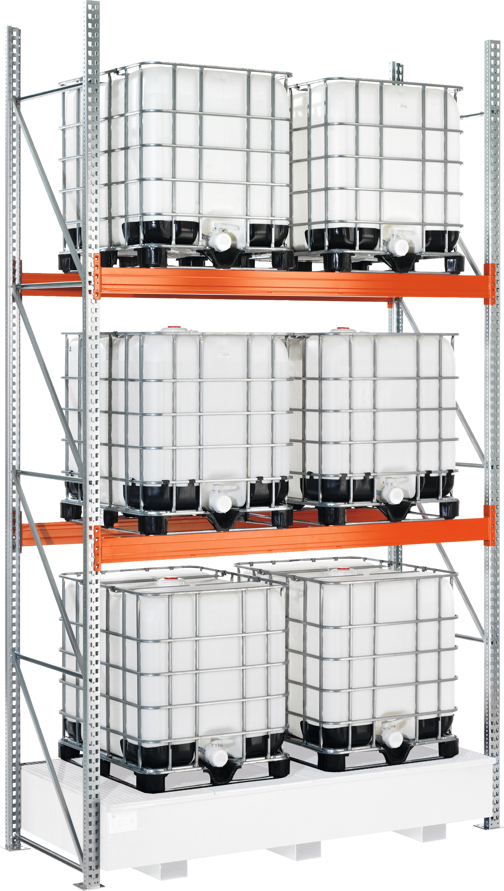 Umweltpalettenregal IBC-Container verzinkt Anbauregal 2225x1100x3300mm 2 Ebenen