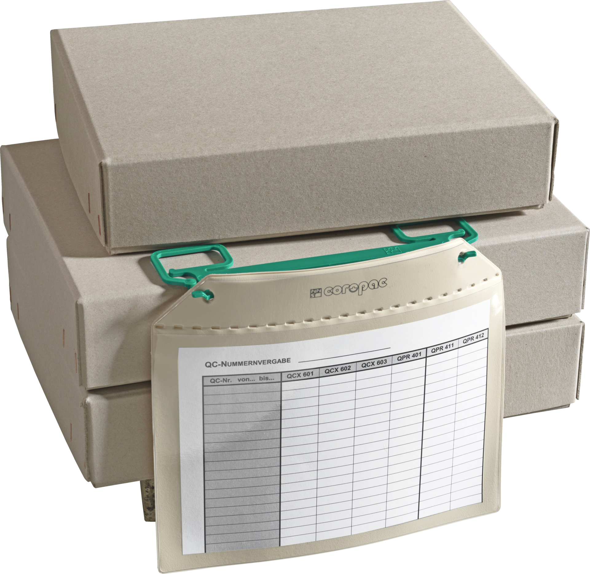 | Einsatz: | für Sichttasche (Art.-Nr. 85525...), zur Anbringung an Kunststoffboxen, Eindrücken in Kartonagen und Halten zwischen Stapelgut |