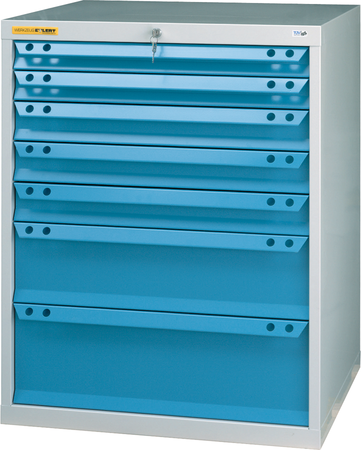 Schubladenschrank Höhe 800mm mit 7 Schubladen 200kg RAL7035/5012 T695 x B1205mm
