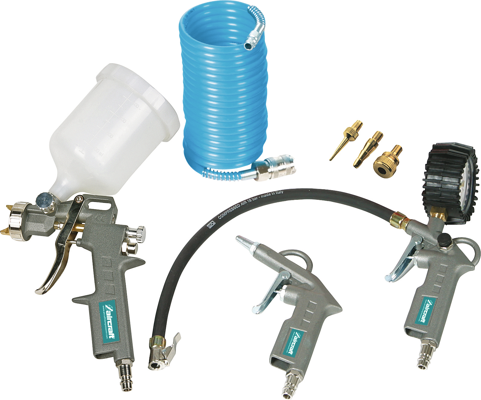 1 Spiralschlauch 6 m (Innen-Ø 6,5 mm, Außen-Ø 10 mm) mit Sicherheits-Schnellkupplung und Stecknippel