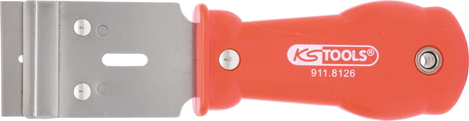 feste Klinge, durch seitliches Herausschieben leicht wechselbar, mit Befestigungsöse