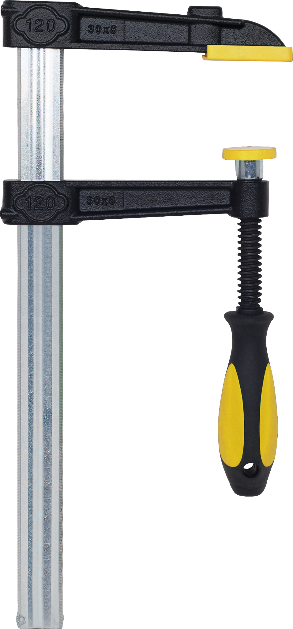 Schraubzwinge Ganzstahl Ausladung 120mm Schiene 25x12mm SW400mm