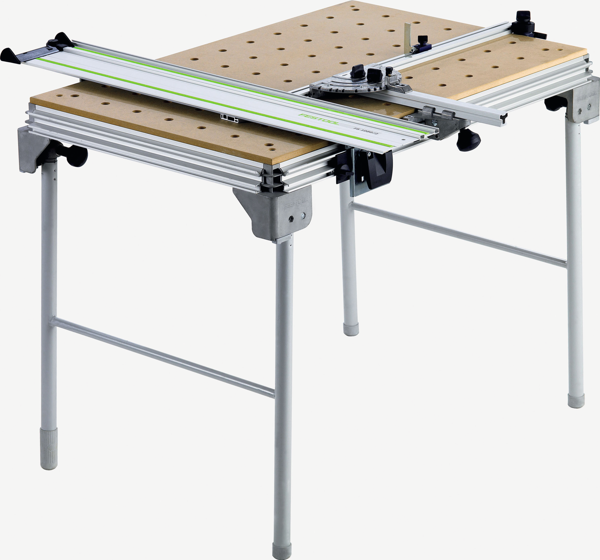 perfekte Anbindung an Festool Systeme, Möglichkeit der Anbindung des Vakuum-Spannsystems VAC SYS, kompatibel zum Compakt Modul System CMS, mobiler Einsatz durch klappbare BeineLieferumfang: