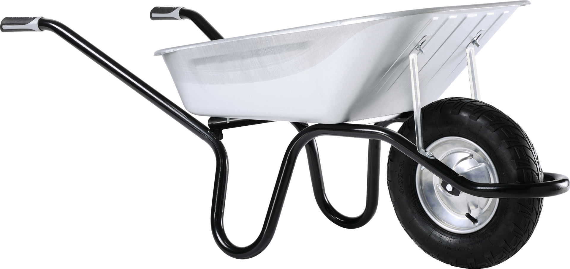 verzinkte Mulde, mit Verstärkungssicken, lackiertes Rohrgestell Ø 32 mm mit Kippbügel, Metallfelge, luftbereiftes Kugellagerrad Ø 400 mm, mit Zweikomponenten-Softgriffen
