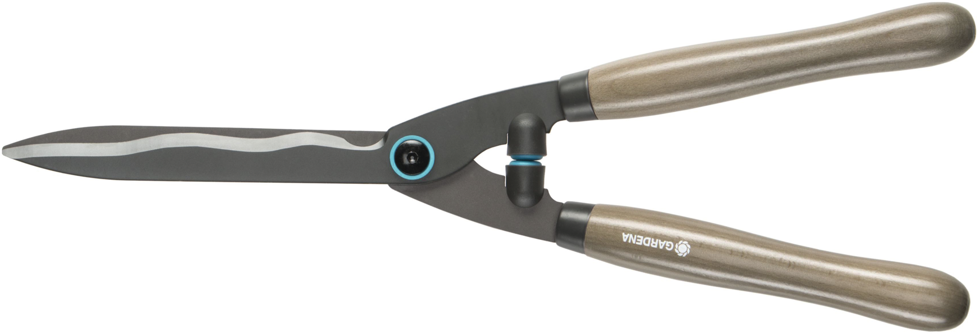 Griffe aus FSC®-Holz (100 %-zertifiziertes Holz), antihaftbeschichtete Schneidmesser, Wellenschliff, mit integriertem Astabschneider, Stoßdämpfung durch doppelseitige Anschlagpuffer