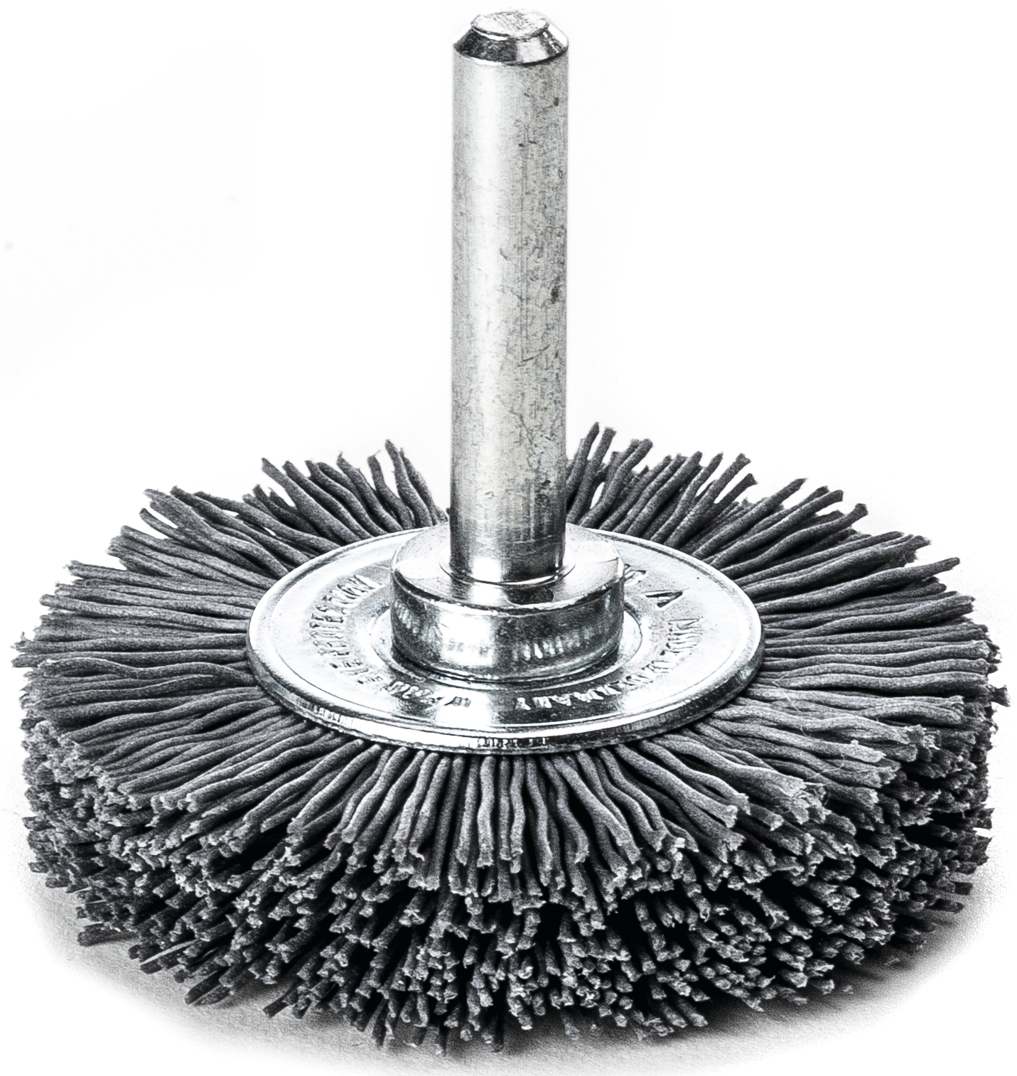 Schleifborstenbesatz aus Aluminiumoxid, passt sich an die Konturen des Werkstücks an, ohne die Oberfläche wesentlich zu verändern, konstante Abtragsleistung durch immer wieder freigesetztes Schleifkorn