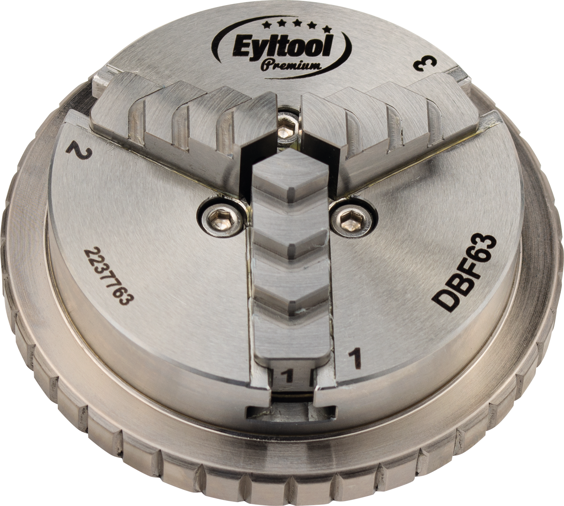 60 % flacher als Standard-Spannfutter, Spannung erfolgt durch Drehen am Spannring von Hand - kein Werkzeug erforderlich, Rundlauf < 0,02 mm, Spannwiederholgenauigkeit < 0,005 mmLieferumfang:1 Satz gehärteter, umkehrbarer Backen und zylindrische Aufnahme