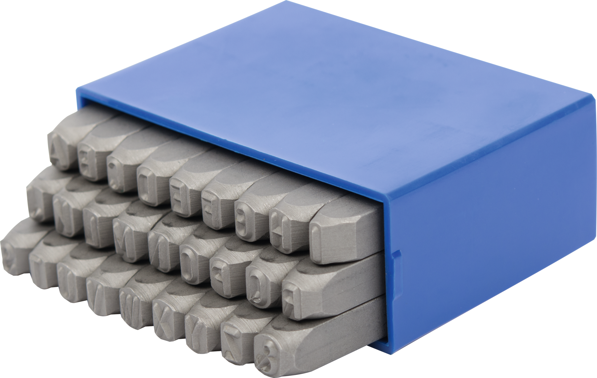in Normalschrift, im Typenhalter können mehrere Schlagstempel nebeneinander eingesetzt werdenLieferumfang:100 Stempeltypen, 6 Distanzstücke, Pinzette, Sechskantschlüssel, Typenhalter und Kunststoffkasten