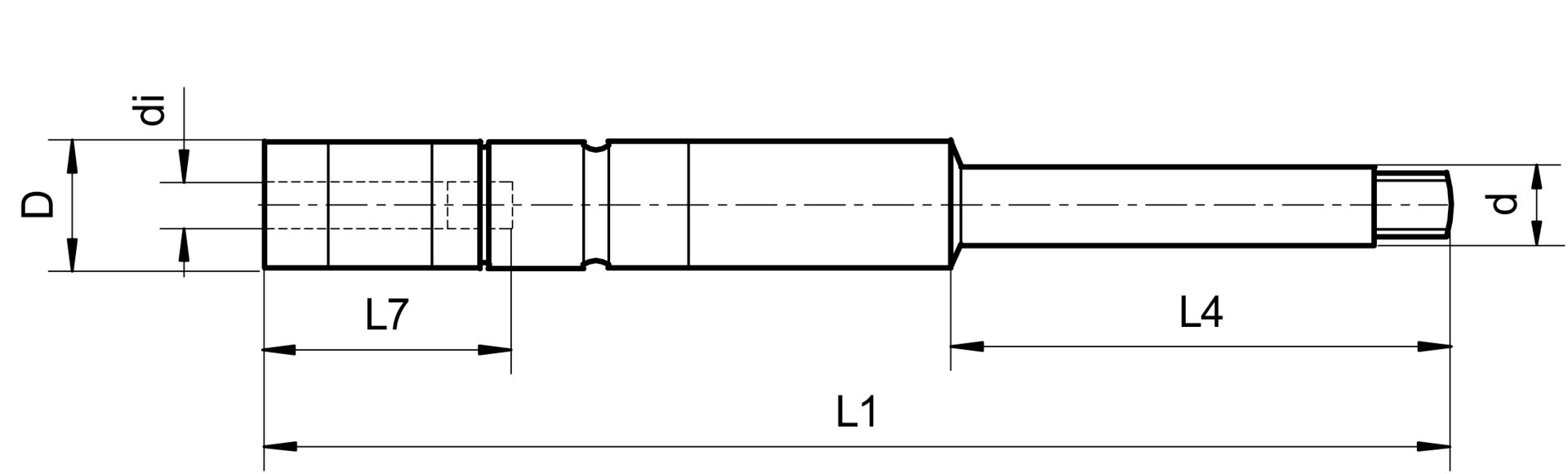 Verlängerung Gewindebohrer M3/M4,5-M5 DIN371/DIN376 D3,5mm GL230mm