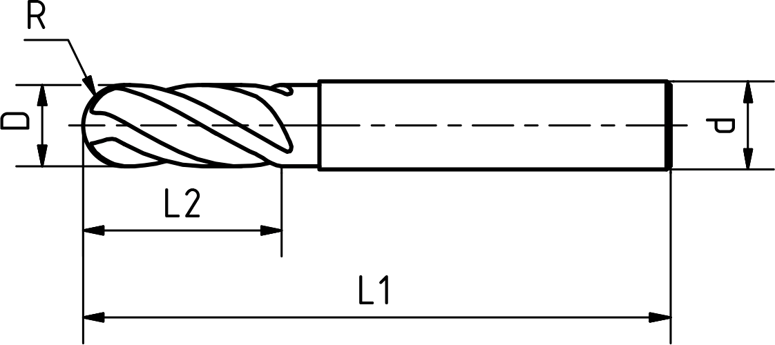 Vollradiuskopierfräser VHM EYL-Supra Z3 HSC 40° WN/DIN6535-HA D10