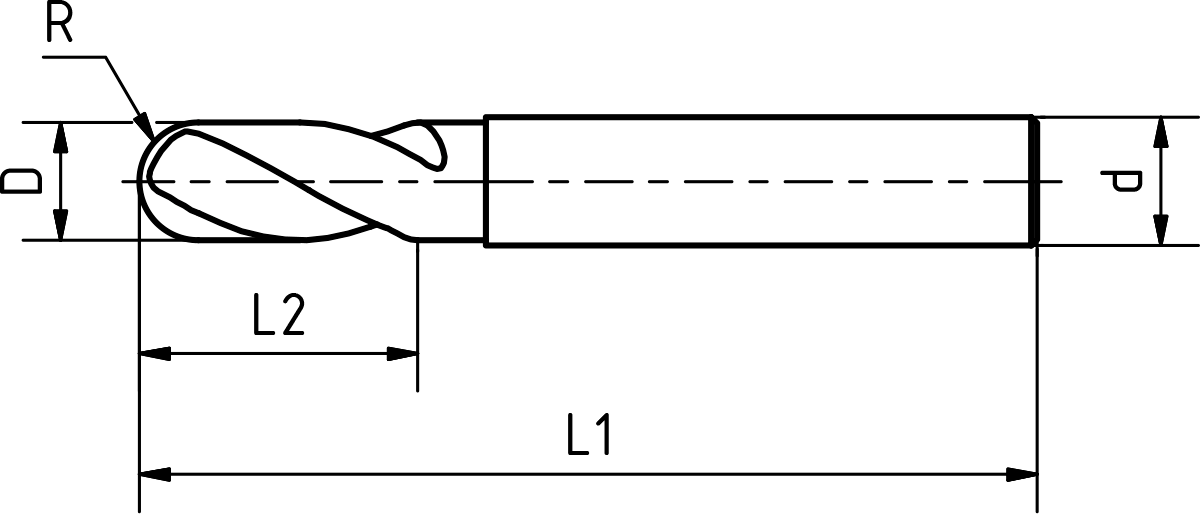 Vollradiuskopierfräser VHM Z2 Eyl+ Typ N DIN6527L/6535-HB lang R10mm D20mm