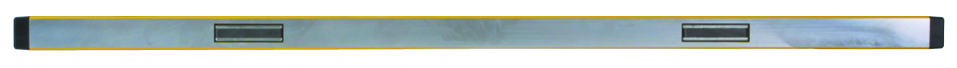 gefräste Sohle, tonnenförmige Horizontal- und Vertikallibelle aus Plexiglas, stoßdämpfende Gummiendkappen, mit Magneten (2 bei Länge bis 100 cm, 3 ab Länge 150 cm), gelb pulverbeschichtet