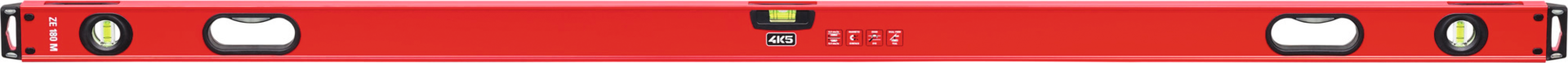 zwei gefräste Sohlen (bis Länge 100 cm), tonnenförmige Horizontal- und zwei Vertikallibellen aus Plexiglas, gummierte Endkappen und Wand-Rutschstopper, durchgängiger Profil-/Libellensteg (durchgängige Abzugs- und Anreißkante), mit Seltenerdmagneten (2 bei Länge 80 cm, 4 bei Länge 180 cm), Plumb Site® Dual-View™-Libelle (einzigartige Frontansicht der vertikalen Libelle), ohne Durchgrifföffnung bei Länge 800 mm, Länge 1800 mm mit zwei Durchgrifföffnungen