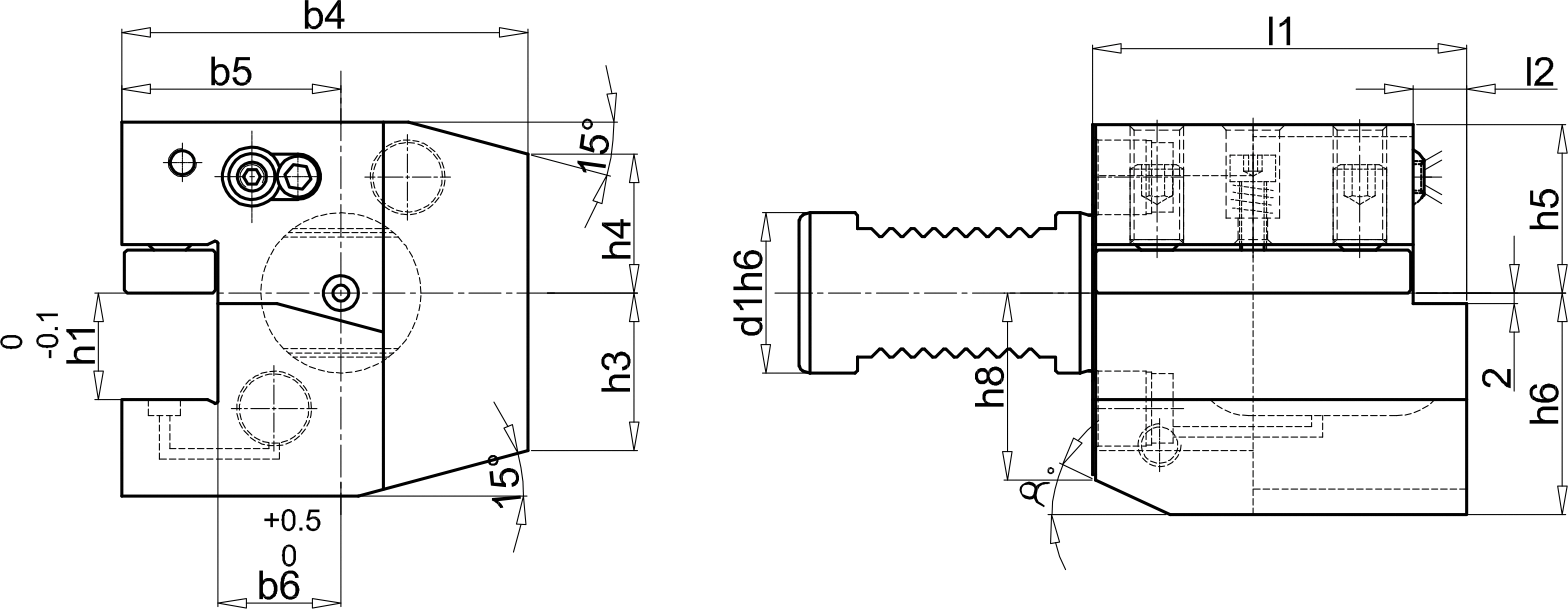 Werkzeughalter axial C2 links, Überkopf C3 rechts VDI40 DIN69880