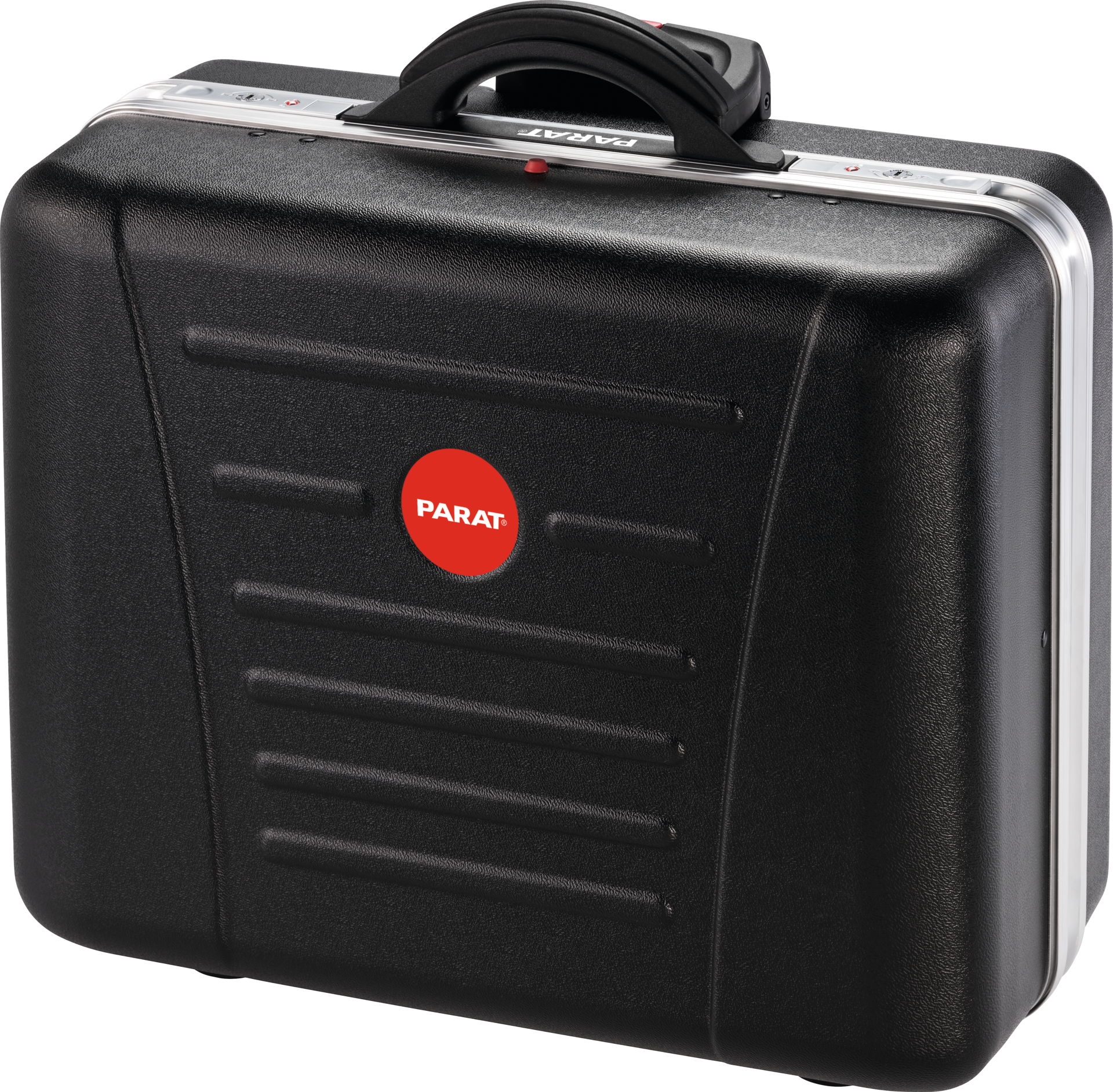 integriertes Trolley-System mit Leichtlaufrollen und Teleskopgriff, extrem schlagfest, Werkzeugtafeln aus Con-Pearl®, Doppel-Aluminiumrahmen, Kippzylinderschlösser (2 Schlüssel), Rasterscharniere, Bodengleiter