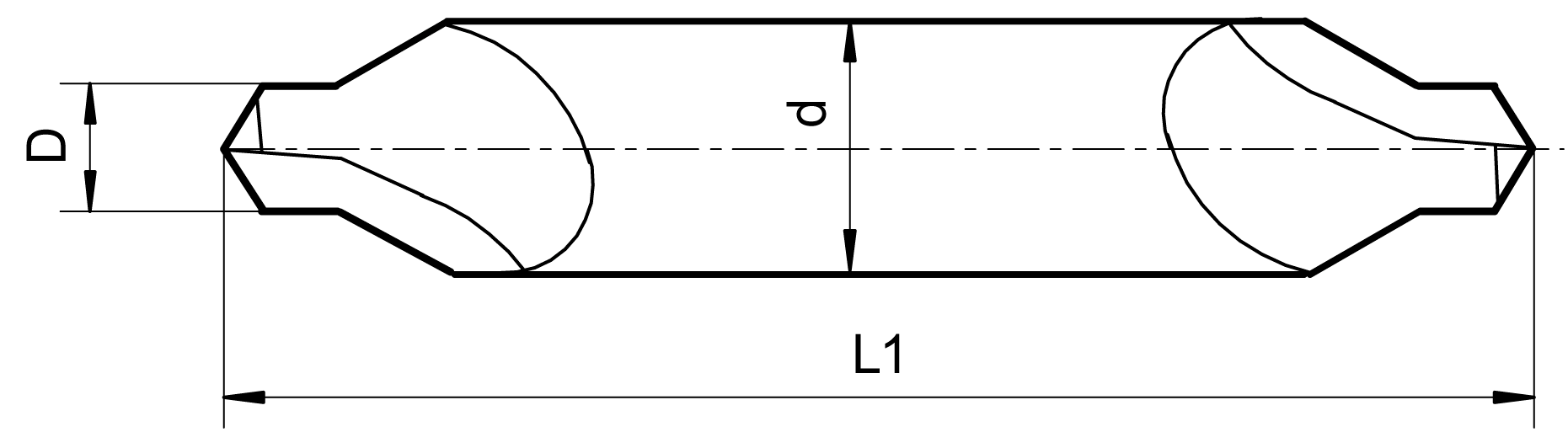 Zentrierbohrer HSS mit Schutzsenkung 60°/120° Form B DIN333 D1mm