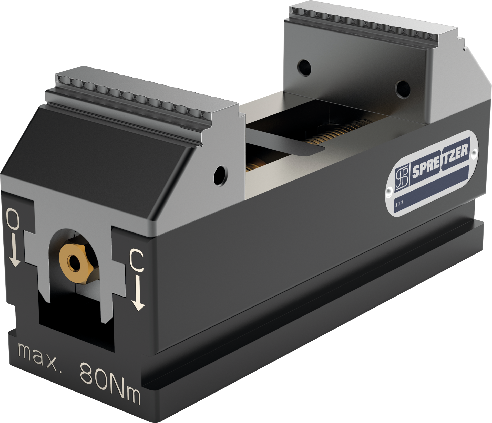vergüteter Werkzeugstahl, oberflächengehärtet, Funktionsflächen präzisionsgeschliffen, gehärtete Spindel, eingepasste Grundbacken, offene Bauweise für maximalen Späneabfluss, Wendebacke für maximalen Spannbereich, Wiederholgenauigkeit 0,01 mm, Paarungsgenauigkeit 0,03 mm